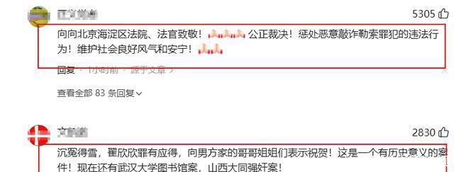面对这样的判罚,结果,不少网友拍手称快,翟欣欣真的最有赢得,社会上很多不良的风气终于能够止住了。